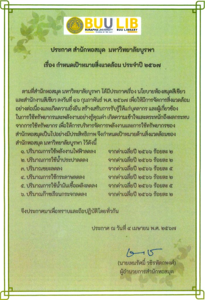 ห้องสมุดสีเขียว ปี พ.ศ. 2566-2568