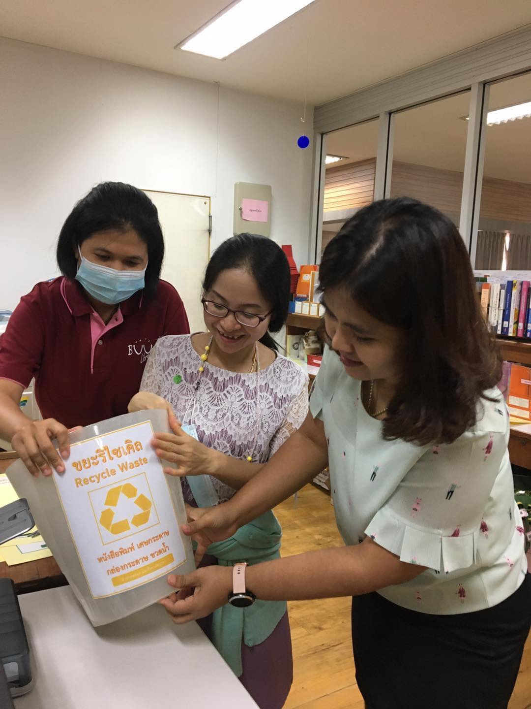 - ติดป้ายบอกประเภทของขยะภายในและภายนอกสำนักหอสมุด